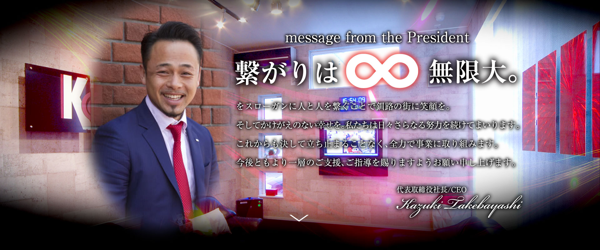 【本社】北海道釧路市昭和中央4丁目9番18号 カズゥービル2F 【資本金】10,000,000円 【設立】2001年11月 【代表者】竹林 一城 【取引先銀行】 北海道銀行 釧路支店 北洋銀行 釧路中央店 釧路信用組合 西港支店 ジャパンネット銀行 本店営業部